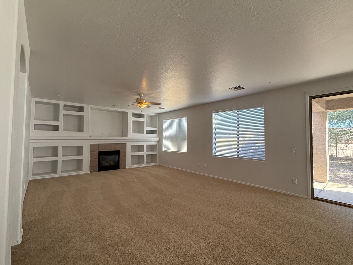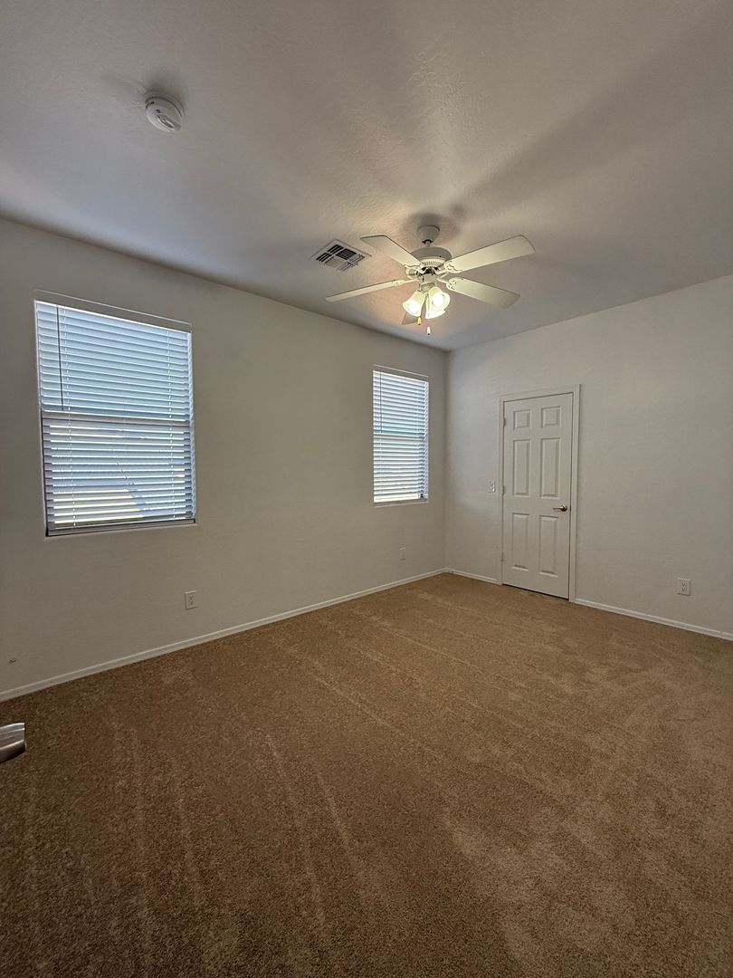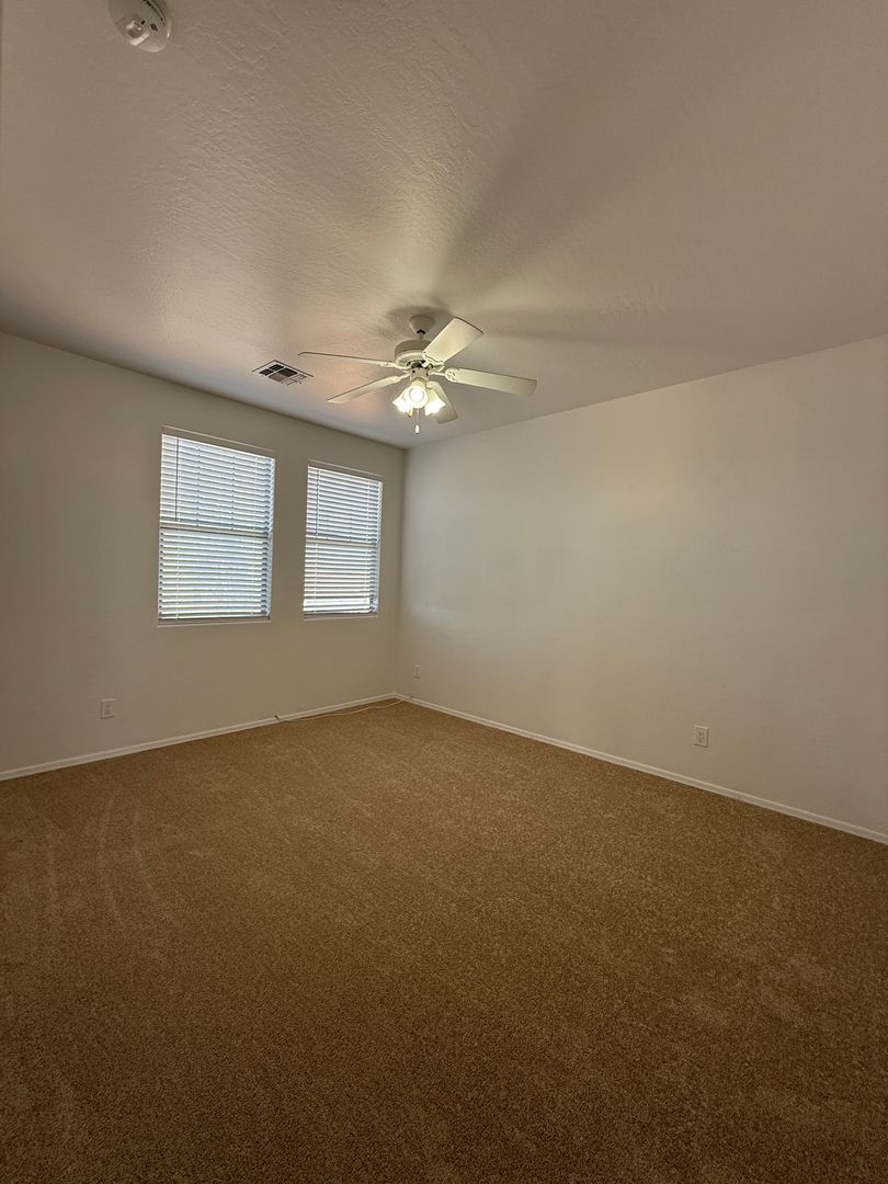Enjoy a large open kitchen and family room with a cozy gas fireplace, plus a bedroom and full bath on the main level. Each room features ceiling fans, and the upstairs loft adds flexible living space for an office, playroom, or media area.