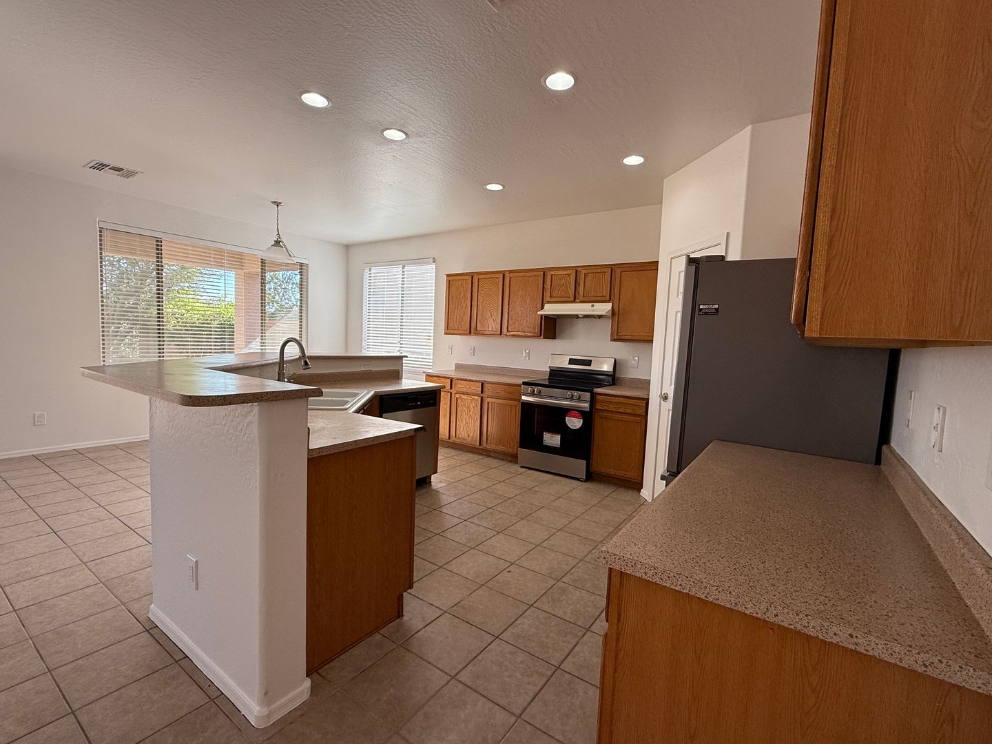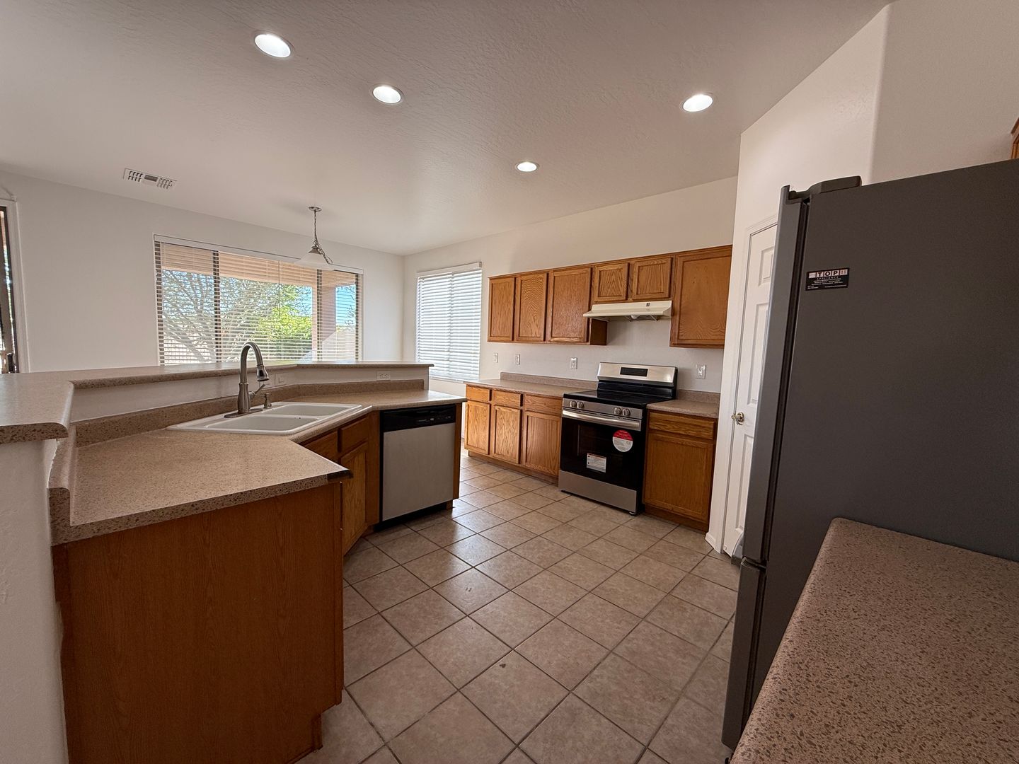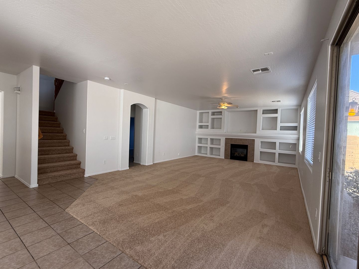 Enjoy a large open kitchen and family room with a cozy gas fireplace, plus a bedroom and full bath on the main level. Each room features ceiling fans, and the upstairs loft adds flexible living space for an office, playroom, or media area.
