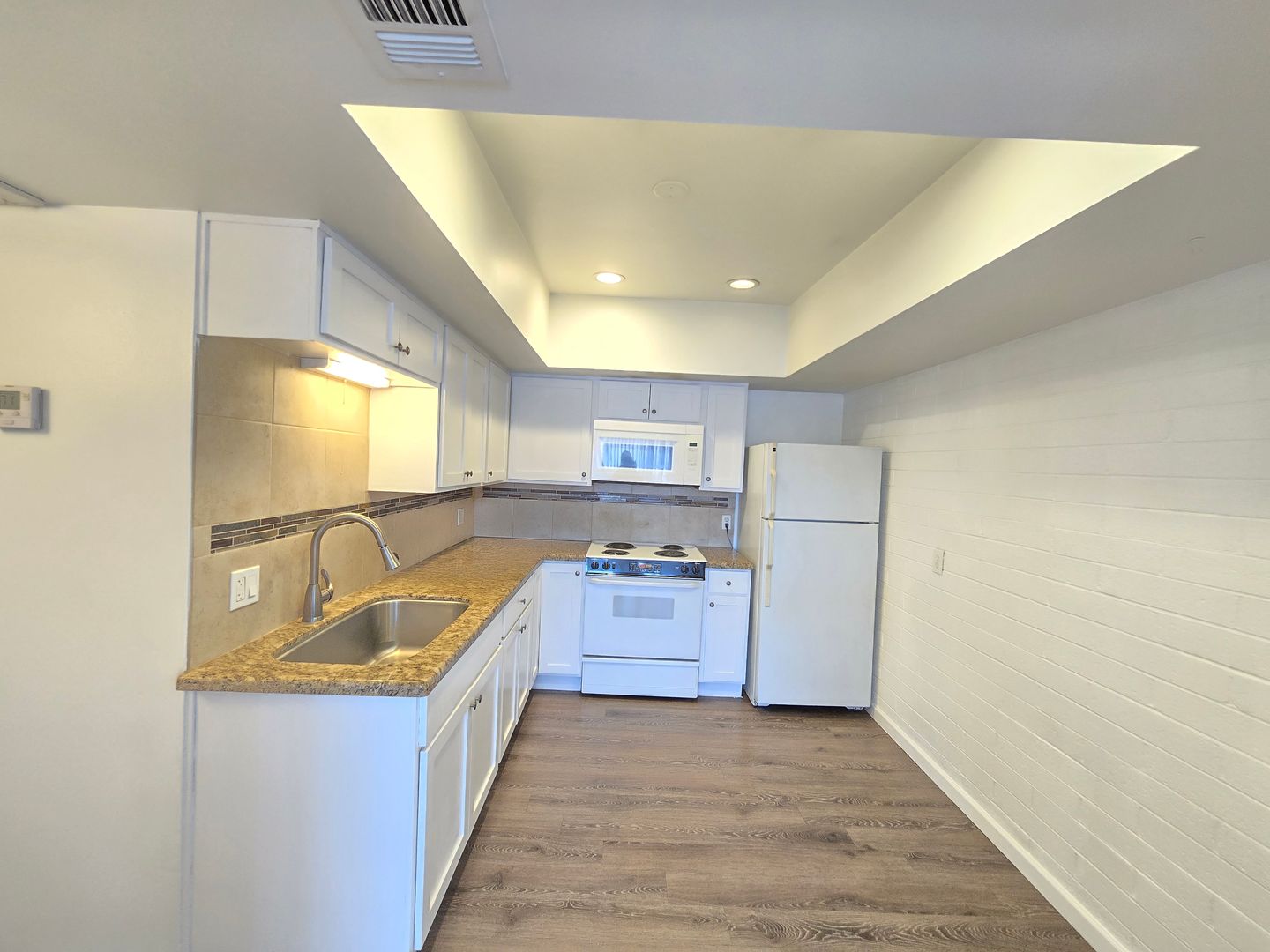 Beautiful 2 bedroom, 1 bathroom apartment featuring an updated open floor plan and neutral colors throughout. Freshly painted and ready for immediate move-in! Enjoy all tile flooring for easy maintenance and a clean, modern feel. Solid block construction helps keep the cool air in and energy costs down. Community laundry room and covered parking add to this fabulous rental.