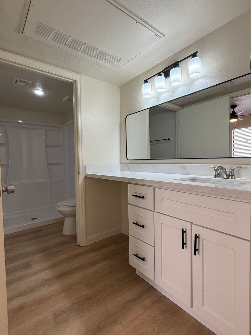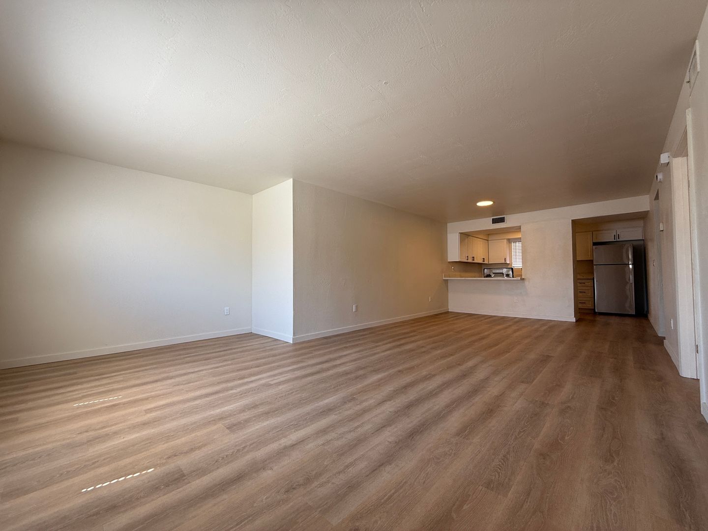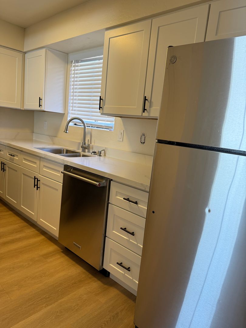 Move-in ready, remodeled first-floor unit in the Four Peaks community near Lindsay & McKellips! This 2 bed, 2 bath, ~900 sq ft home features a large, open living room and a galley kitchen with new quartz countertops, stainless steel appliances, and refrigerator included. Stylish vinyl plank flooring throughout (no carpet), fresh paint, 2" blinds, and new tub/shower installs in both bathrooms. Shared on-site laundry in the building. Community amenities include a pool and basketball courts. Fantastic Mesa location close to shopping, dining, and freeway access. Ask about current move-in specials!