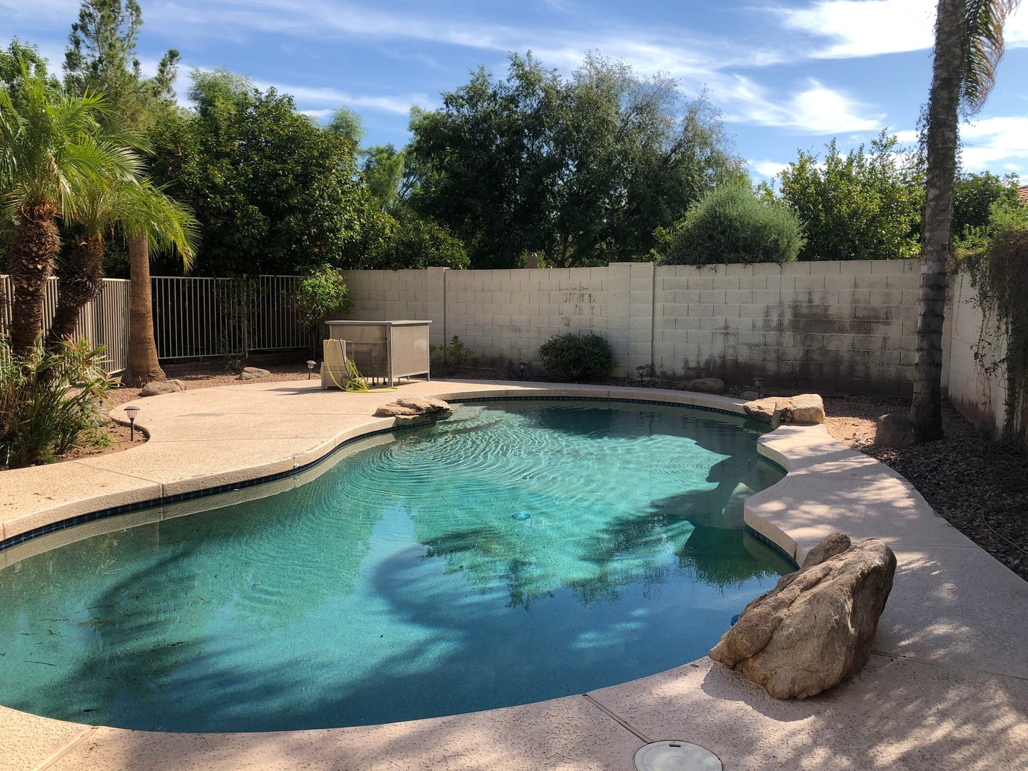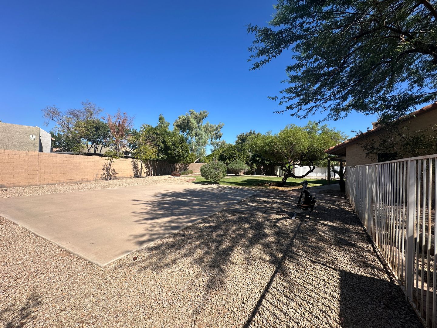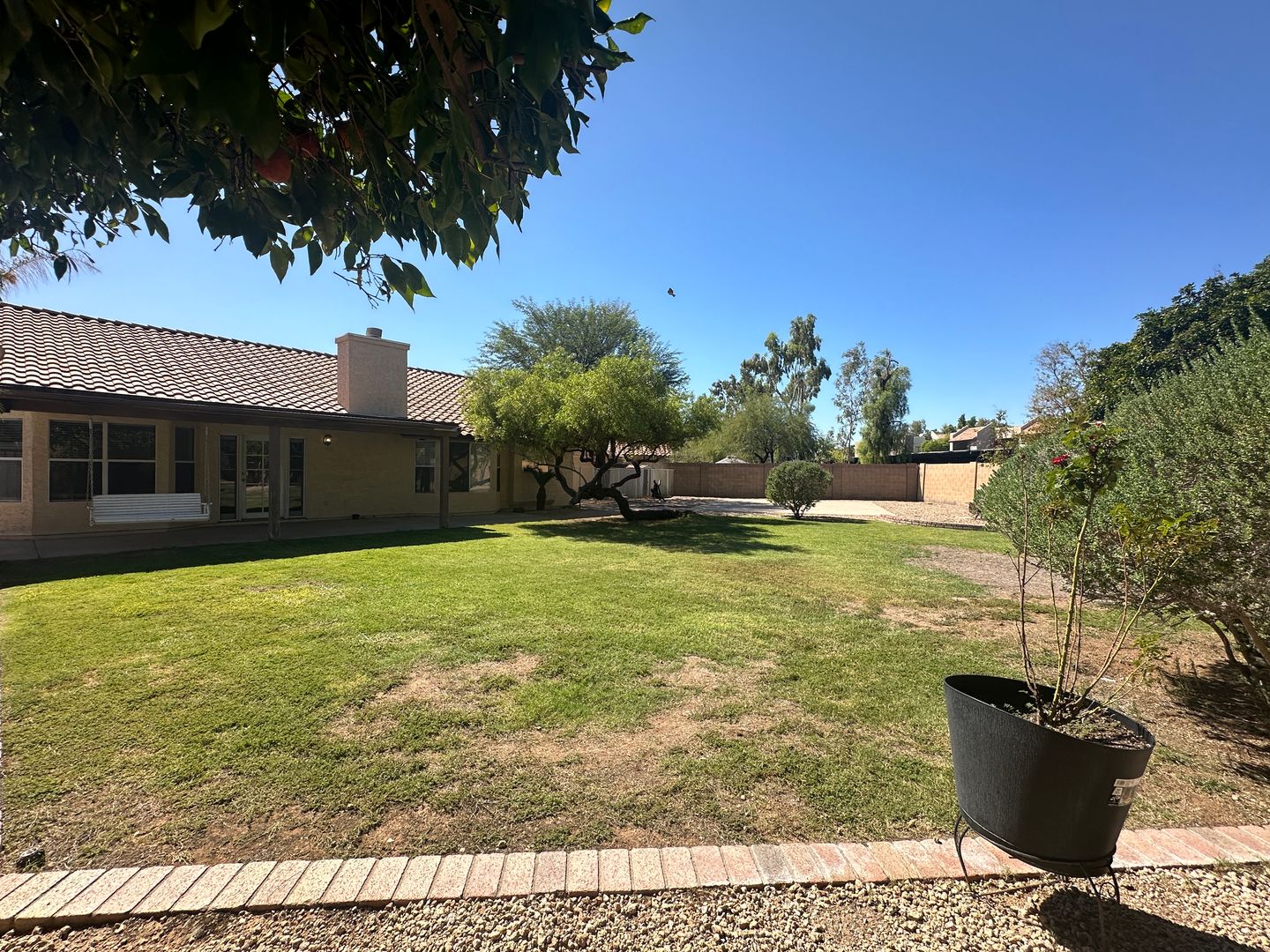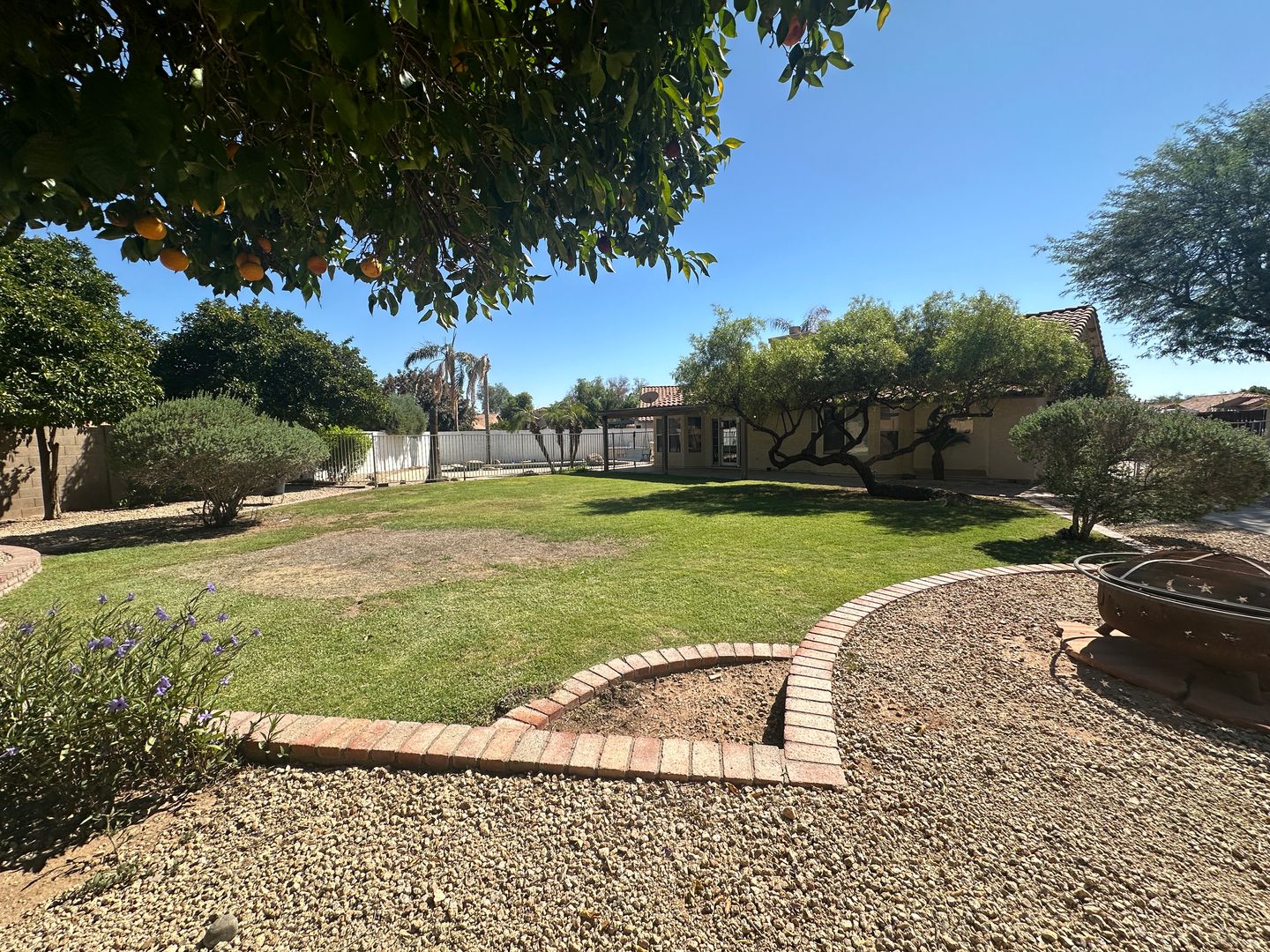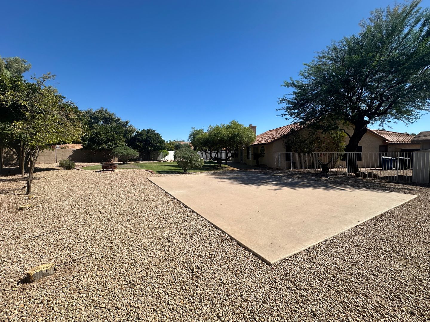 Prime Chandler Location: Pecos & Alma School! Situated on a quiet cul-de-sac lot, this property features an expansive backyard perfect for entertaining. Enjoy a basketball court, RV gate, fenced pool, lush grass areas, and orange trees lining the fence for added privacy and charm. Pool and landscaping service are INCLUDED in the rent.
