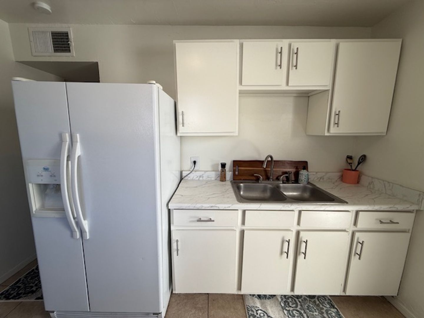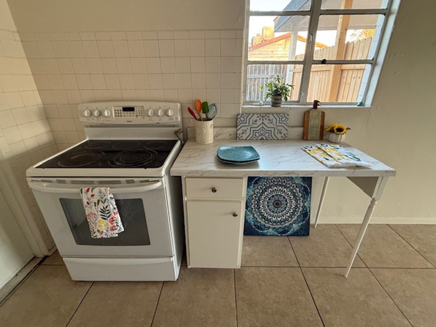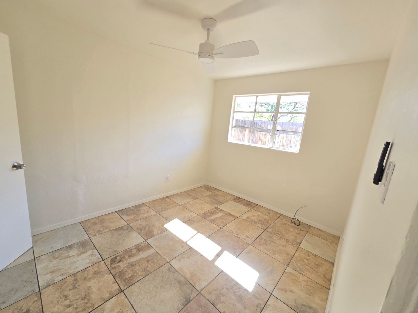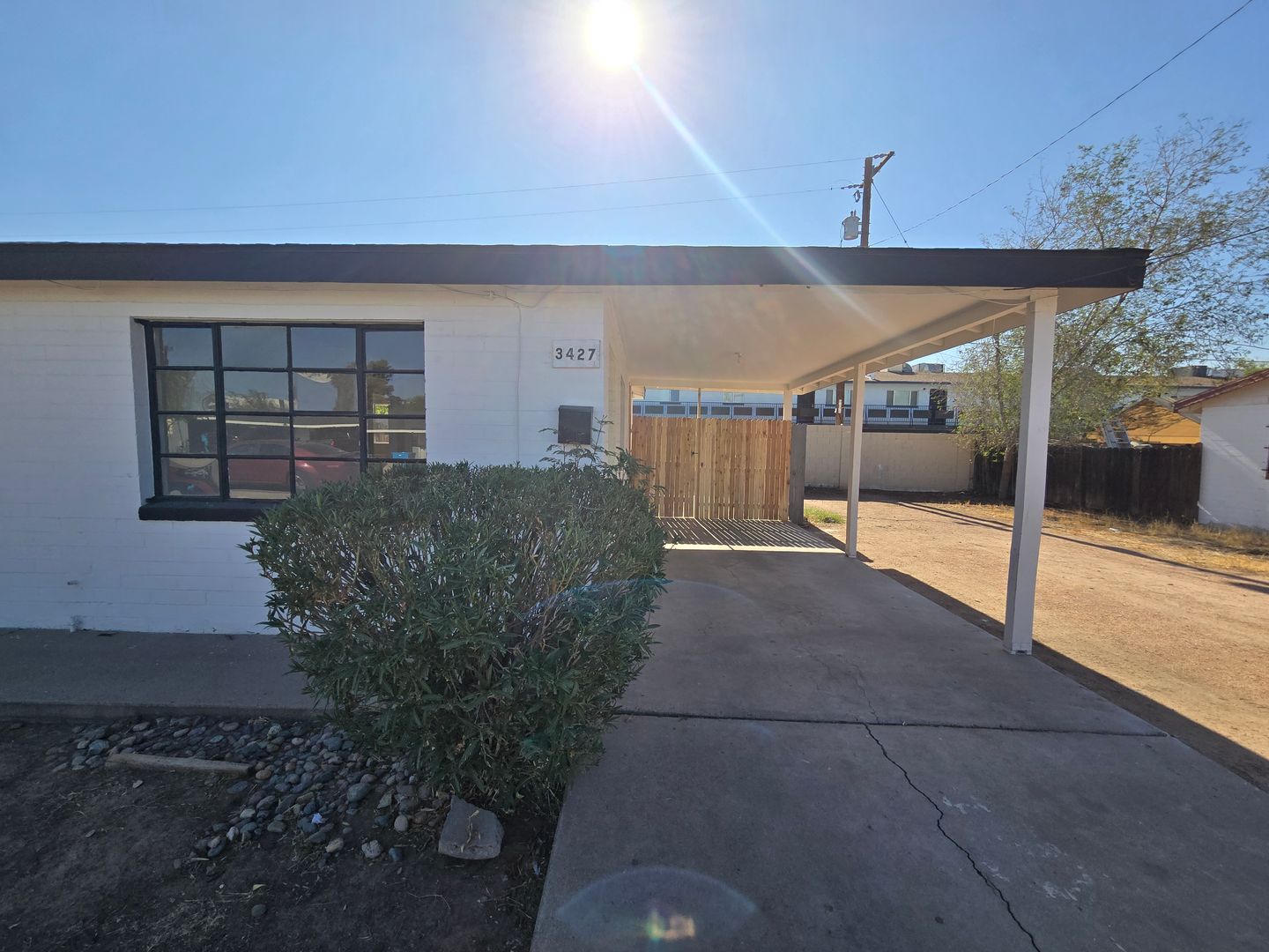 2 Bedrooms 1 Bathroom refreshed and ready for immediate move in. This apartment has all tile floors, freshly painted and new fixtures. Fenced yard and private driveway with covered parking!