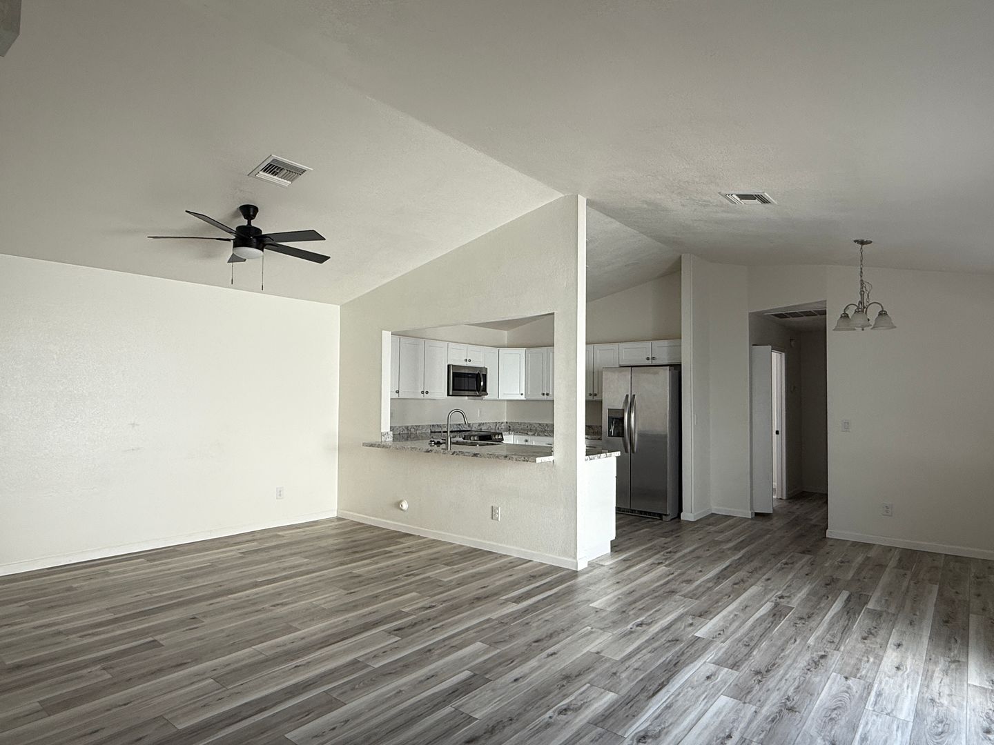 Enjoy modern bathrooms with tiled showers and surrounds, and a split, open floor plan with vaulted ceilings that create a bright and spacious feel. Step outside to a charming paver patio just off the living room perfect for relaxing or entertaining.